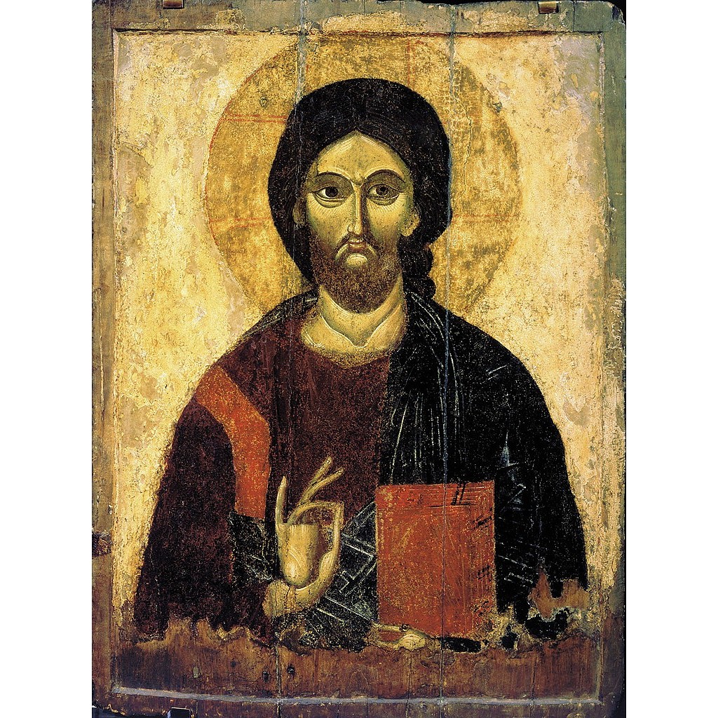 Здесь фигура Иисуса показывается до пояса (поясное изображение). В левой руке его находится книга (Евангелие), а пальцы правой руки, зачастую, сложены именнословно – то есть, их сложение условно-графически образует аббревиатуру имени Иисус Христос (отставленный мизинец – I, скрещённые указательный и средний пальцы – Х).