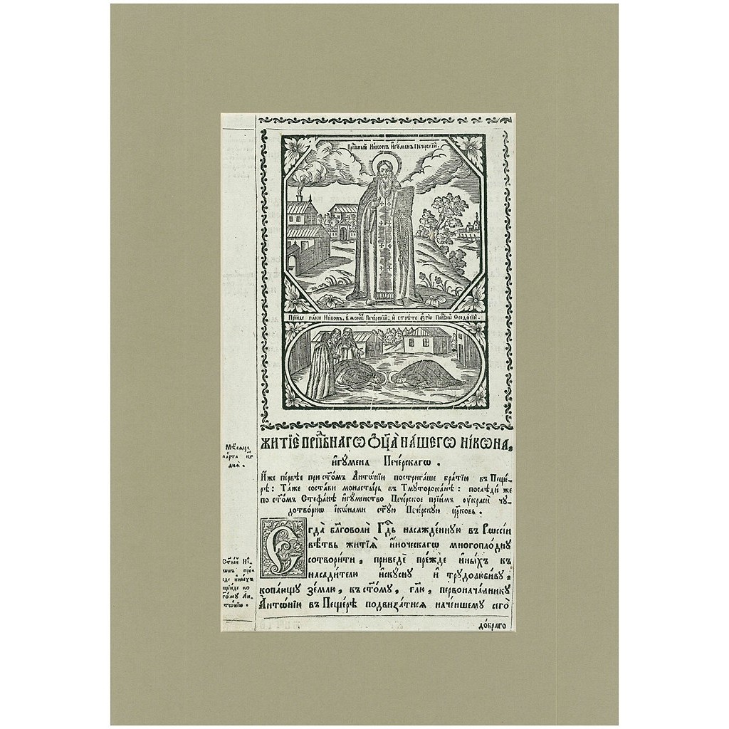 Когда Господь благоволил сделать многоплодной насажденную на Руси ветвь жития иноческого, Он привел к искусному и трудолюбивому насадителю, копающему землю, этого доброго сотрудника прежде других; то есть, к святому первоначальнику Антонию, начавшему подвизаться в пещере, – преподобного Никона. Успешно проходя степени иноческих добродетелей, он так подражал во всем наставнику и учителю своему, что преподобный Антоний нашел его достойным быть поставленным вождем, вводящим прочих делателей в мысленный виноградник постнического подвижничества.
