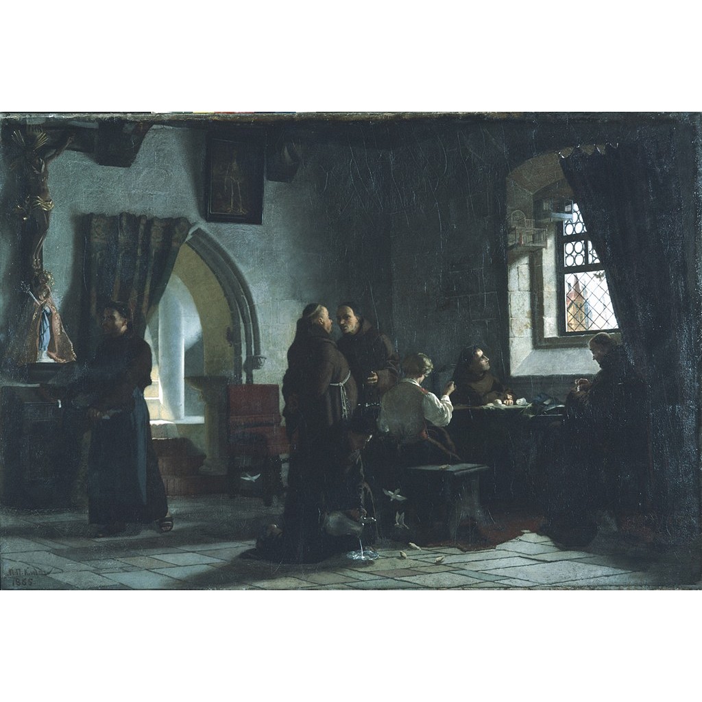 Картина Михаила Клодта «Швальня в католическом францисканском монастыре» была написана в Мюнхене, экспонировалась на Всемирной выставке в Париже и академической выставке в Санкт-Петербурге. В 1918 году работа поступила в собрание Ульяновского областного художественного музея из частной коллекции.